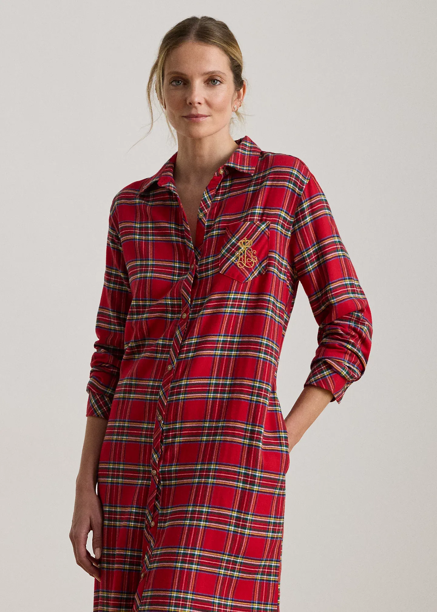Plaid Brushed Twill Long Sleep Shirt