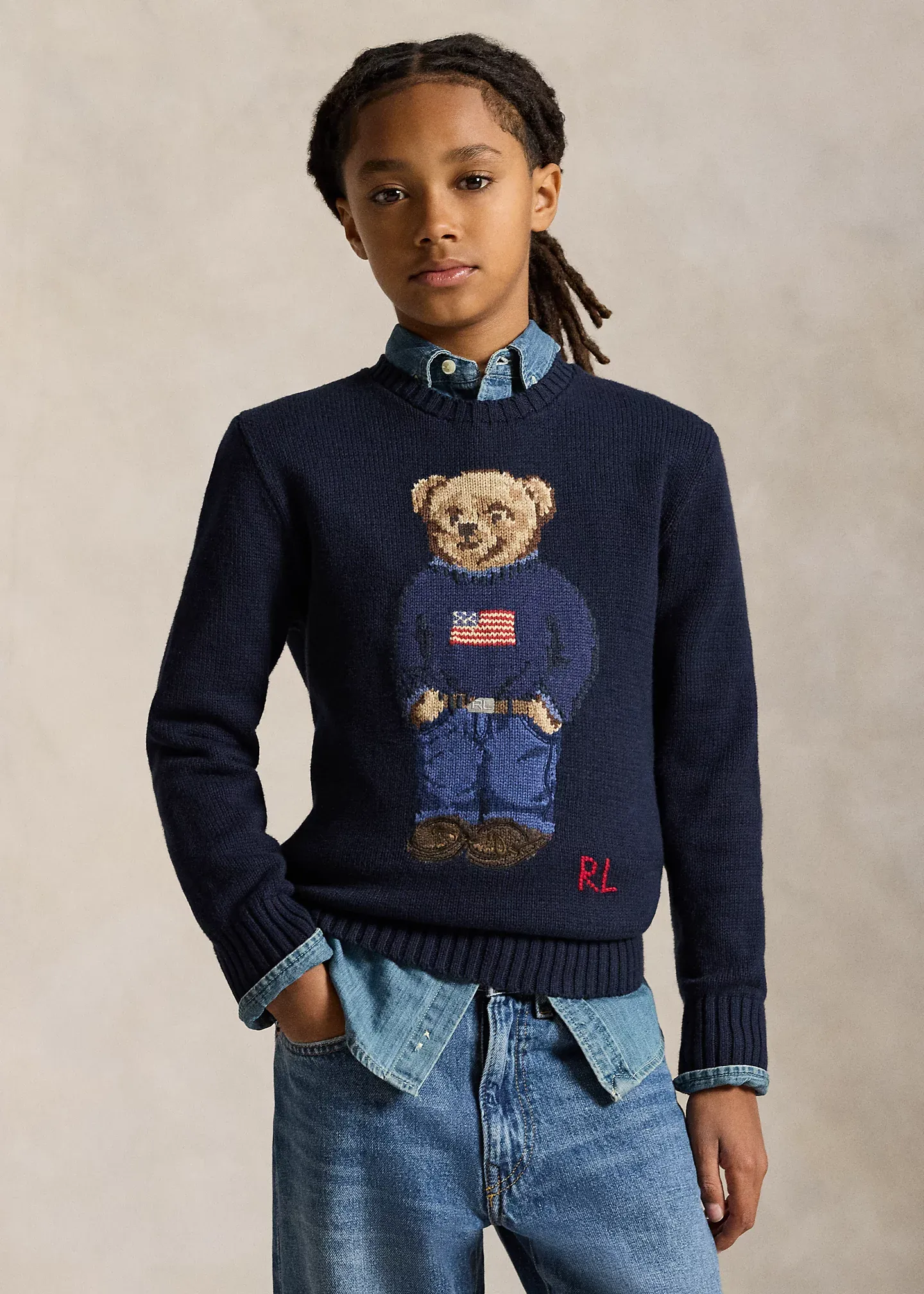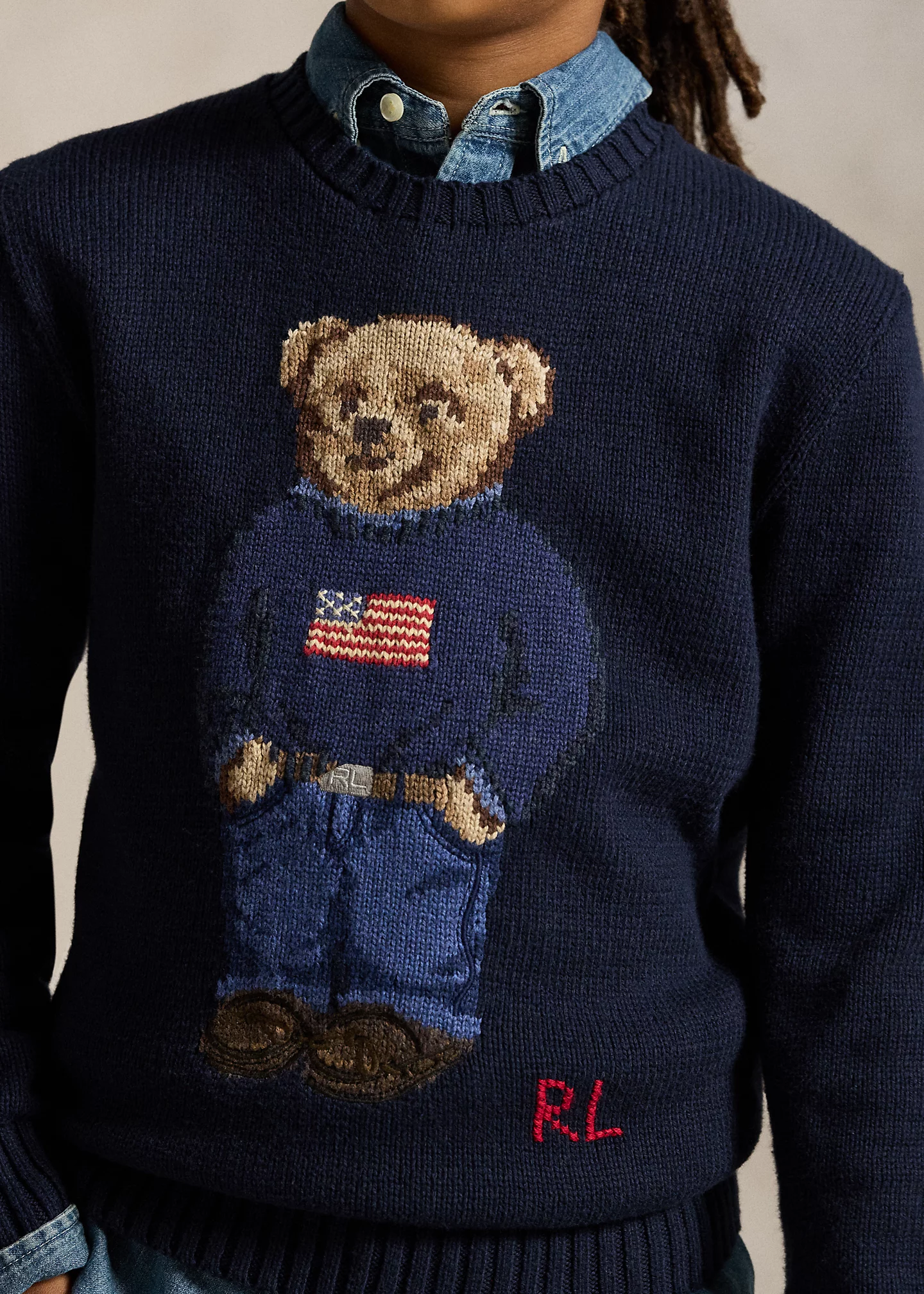 - Signature Polo Bear and "RL" intarsia-knit at the center front.