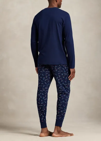- Pants: ribbed elasticized drawstring waist with woven “Polo RL” label at the front; side on-seam pockets; ribbed cuffs.